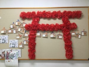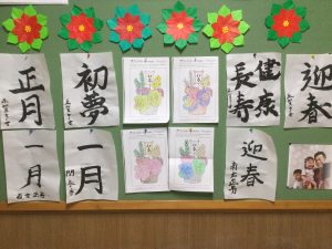1月のとあるレクリエーションの時間に、書初めと絵馬作りを行いました。絵馬には、皆様お願い事等を書かれていらっしゃいました。